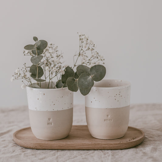 Hier findest du unsere Liebhaberstücke aus Steingut, die einzigartiger nicht sein können. Jeder Becher wird handgetöpfert in einer kleiner Töpferei an der Küste Portugals. Die von uns entwickelte Form und deren fein abgestimmte Glasur wird durch minimalistische Blindprägungen abgerundet. Es hat nicht lange gedauert bis unsere Lieblingskategorie auch eure Herzen erobert hat und mittlerweile das Herzstück von Eulenschnitt geworden ist. All diese Liebhaberstücke sind zudem spülmaschinenfest und sehr pflegeleicht. Viel Spaß beim entdecken!