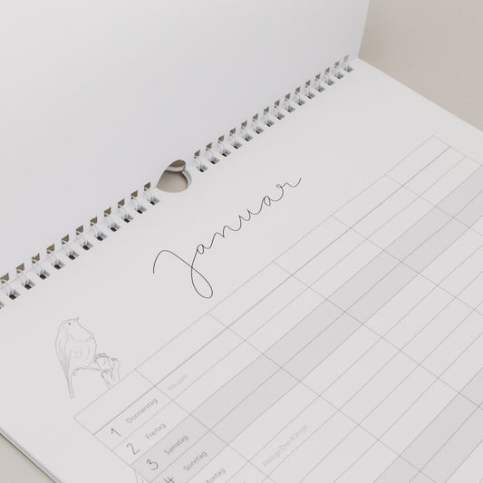 Manchmal ist weniger mehr. Wie schön ist ein minimalistischer Kalender in schwarz-weiß? Eine wundervolle Übersicht des ganzen Jahres ohne scrollen zu müssen. Urlaubstage, Verabredungen, Geburtstage und vieles mehr können somit perfekt farblich hervorgehoben werden. Entweder nur für dich oder für all deine Liebsten in Form eines Familienkalenders. Würdest du dich über einen dieser Kalender als Geschenk auch so sehr freuen?