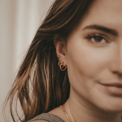Découvrez nos nouvelles créoles Lara Gold. Avec 1,1 cm, elles ont le diamètre parfait pour les assortir à des tenues quotidiennes. Les petites pierres de zirconia scintillantes en font néanmoins quelque chose de très spécial.