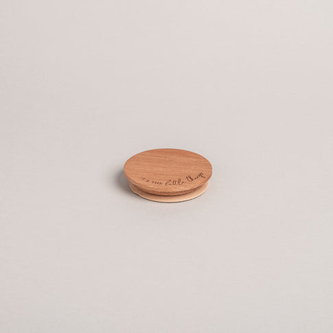 Découvrez notre couvercle Little Things pour nos carafes en bois de hêtre. Parfait si vous aimez laisser vos boissons sans surveillance, ainsi ni la poussière ni les insectes ne peuvent atteindre votre boisson préférée, avec nos couvercles en bois de hêtre et élastomère. La face supérieure est ornée de la phrase « It's the little things » et le dessous de notre logo Eulenschnitt.