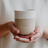 Wir haben sehr viel Herzblut in eine neue Kollektion gesteckt, die von der Form, dem Ton, dem Glazing, sowie dem Design von uns entwickelt wurde. Eine kleine Töpferei aus Portugal produziert diese wundervollen Becher in liebevoller Handarbeit & ist ein großartiger neuer Begleiter auf unserem kreativen Weg. Unsere Becher lassen die Herzen höher schlagen, die die Individualität von Ton & Glasur lieben, denn jeder einzelne Becher hat seinen ganz eigenen Touch. Da alle Becher mit der Hand gefertigt, gebrannt, geprägt, abgeschliffen, geglazt & nochmal gebrannt werden, gibt es Unterschiede in der Drucktiefe, in der Höhe sowie der Geradlinigkeit. Das minimalistische Design und die natürlichen Farbnuancen werden von einer wunderschönen Blindprägung “Glücklich” abgerundet. Wir sind verliebt & voller purer Freude & können es kaum abwarten unsere neue Kollektion in Euren Händen zu sehen!